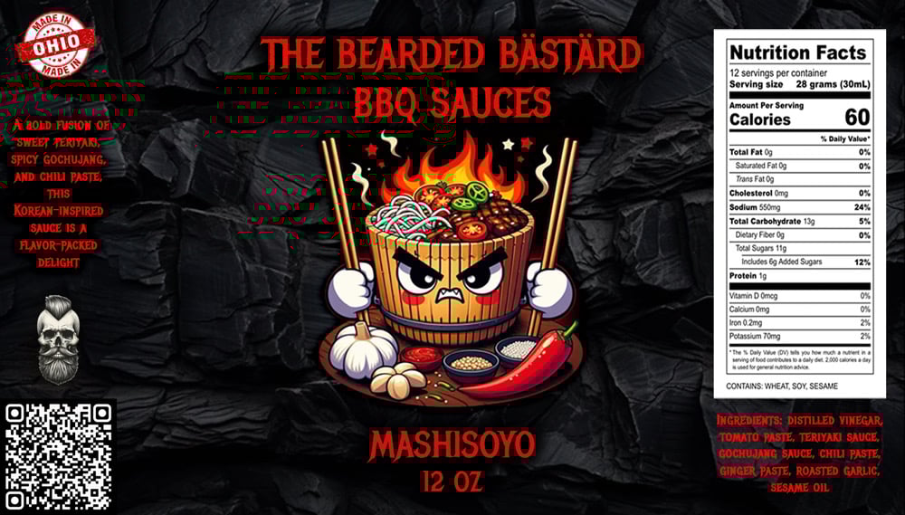 Mashisoyo BBQ Sauce: A bold fusion of sweet teriyaki, spicy gochujang, and chili paste, this Korean-inspired sauce is a flavor-packed delight. With a touch of sesame oil, zesty ginger paste, and savory roasted garlic paste, it delivers a perfect balance of heat, sweetness, and umami in every bite. Not traditional, but irresistibly delicious.